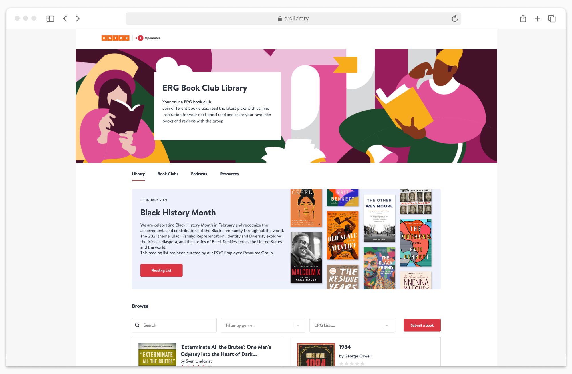 OpenTable and Kayak are sister brands and share their Employer Resources Groups (ERGs), some of which have bookclubs. As an active member of the Women ERG, together with an engineer and the Women ERG leader, we’ve decided to bring those bookclubs online and create a library.